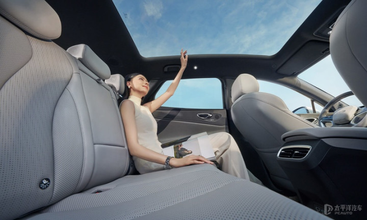 海狮06EV拥有4810/1920/1675长宽高和2820mm轴距这样的标准中型SUV尺寸,比亚迪e平台3.0 Evo又让它的乘员舱占比达 61%,高于同级平均水平。后排腿部空间最大可达1020mm,配合纯平地板设计,中间乘客无需“劈叉”坐姿。与此同时,后排座椅支持靠背角度调节,长途乘坐不容易累。